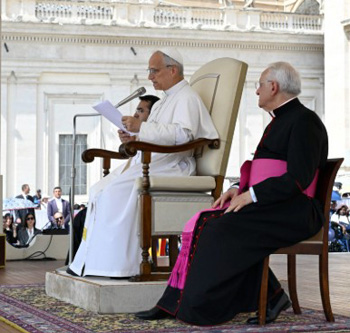 León XIV pronunciando una catequesis en una audiencia general