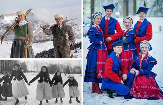 Ropa de invierno tradicional para mujeres en los países europeos.