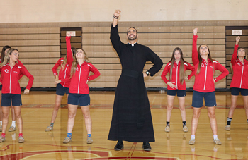 Un sacerdote igualitarista “moderno” practica un ejercicio con las animadoras