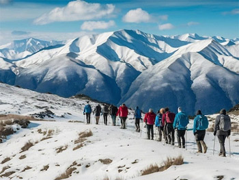 Las diferencias de estatura entre hombres desaparecen frente a las enormes montañas del Himalaya