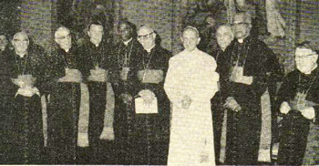 Pablo VI saluda cordialmente a Arch. Bugnini