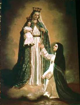 “Pero en esos tiempos ya serás conocida, así como los favores que te estoy otorgando. ¡Cuánto amo a los afortunados habitantes de este lugar sagrado! Y ese conocimiento estimulará el amor y la devoción a mi Imagen Sagrada. Por esta razón, hoy te ordeno con autoridad que hagas esta Imagen: deja que sea esculpida tal como me ves y colocada en la silla de la abadesa, para que desde allí pueda gobernar y dirigir a mis hijas y defender mi convento; porque Satanás, haciendo uso tanto del bien como del mal, emprenderá una feroz batalla para destruirlo.