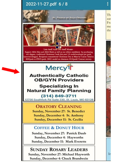 Por favor, mire la captura de pantalla debajo de un anuncio de Planificación Familiar Natural tomado del boletín del Canónigo Coggeshall para esta semana.