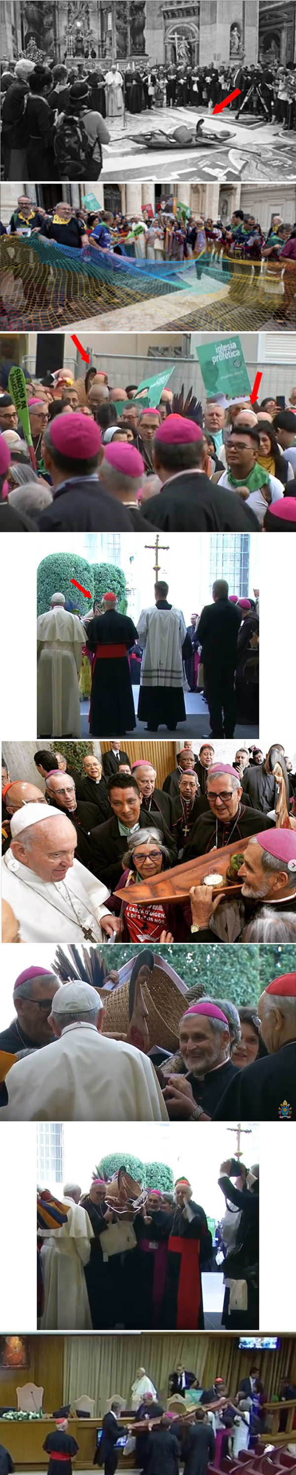 El 6 de octubre de 2019, el Sínodo del Amazonas comenzó con una misa. Después de que terminó, un grupo informal se reunió con el Papa y lo llevó al piso de la Basílica de San Pedro, justo en frente del Altar de la Confesión, primero fila abajo - una canoa con una estatua de una mujer embarazada desnuda sentada. Era una representación de la diosa Madre Tierra, adorada por los indios en América del Sur bajo el nombre de Pachamama.El grupo, incluido el Papa Francisco, caminó hacia adelante en una caótica "procesión" que llevaba a esa diosa, entronizada en su canoa, al edificio donde tendrían lugar las reuniones del Sínodo del Amazonas.