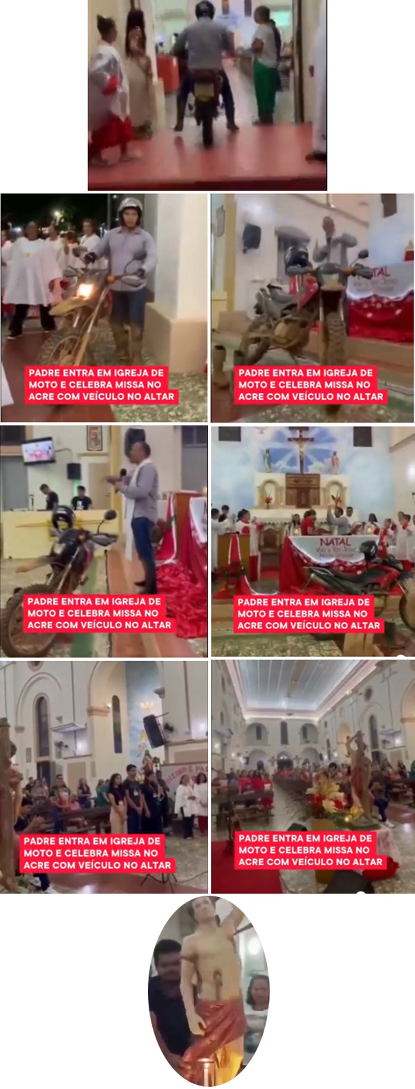 Antonio Menezes es párroco de la ciudad de Xapuri, Estado de Acre, Brasil. La Misa "solemne" del 8 de enero de 2024 fue para celebrar al Santo Patrón de la Iglesia, San Sebastián, cuya estatua fue llevada al frente de la iglesia antes de la Misa, última fila.