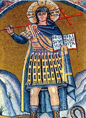 Nuestro Señor está representado como un guerrero en un mosaico en Rávena.