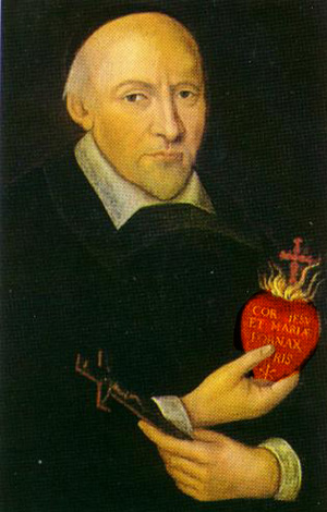San Juan Eudes tiene un solo corazón grabado con Corazón de Jesús y Corazón de María