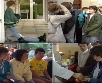 Incluso en presencia del Santísimo Sacramento, vemos a los visitantes del Santuario de Nuestra Señora vestidos con pantalones cortos, camisetas, jeans, mujeres con pantalones, ropa informal y extravagante [7:45]. Si tenemos en cuenta que esta película se realizó hace unos 30 años, entonces, debe verse como un comienzo del actual estilo amoral de la Jornada Mundial de la Juventud.